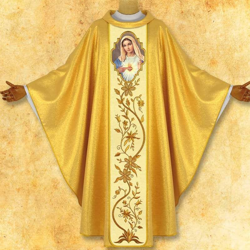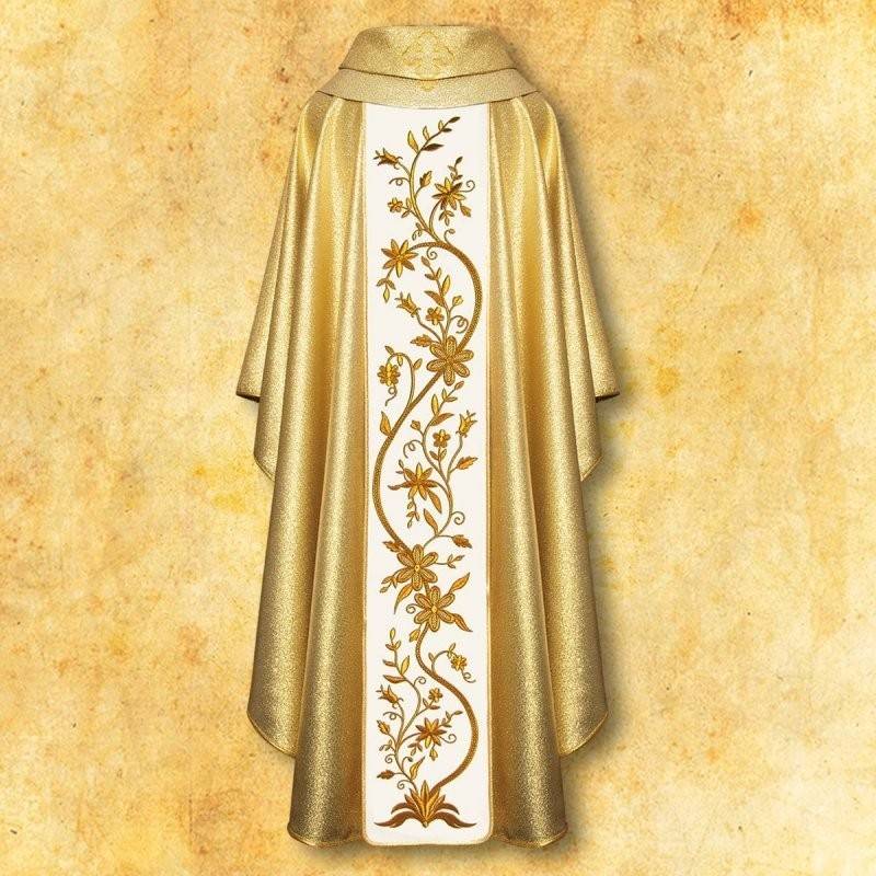 Magnifique chasuble décorée richement de broderies de qualité supérieure l'avant et l'arrière,