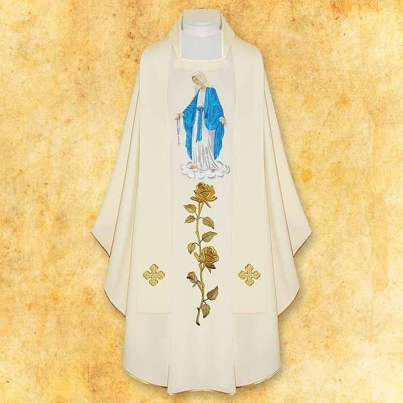 Magnifique chasuble richement brodée l'avant et l'arrière.Tissu de haute qualité: "Diakos", lin et coton- 80% en mélange avec fibres synthétiques, très aéré, infroissable.Couleur: écruPersonnalisation possible.Possibilité d'acheter plusieurs produits du même motif -voyez les propositions en bas.