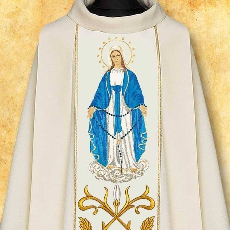 Magnifique chasuble richement brodée l'avant et l'arrière.