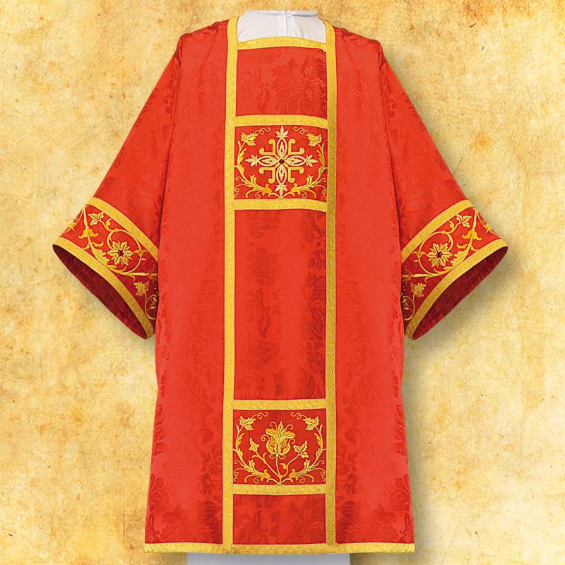 Dalmatique  brodée l'avant et l'arrière.  Tissu de haute qualité: "Diakos", lin et coton- 80% en mélange avec fibres  synthétiques, très aéré, infroissable. Couleur: écru Personnalisation possible. Possibilité  d'acheter plusieurs produits  du même motif  -voyez les propositions en bas.