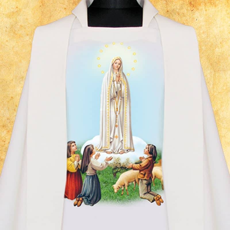 Chasuble , simple et élégante, décorée l'avant et l'arrière . Etole intérieur approprié.