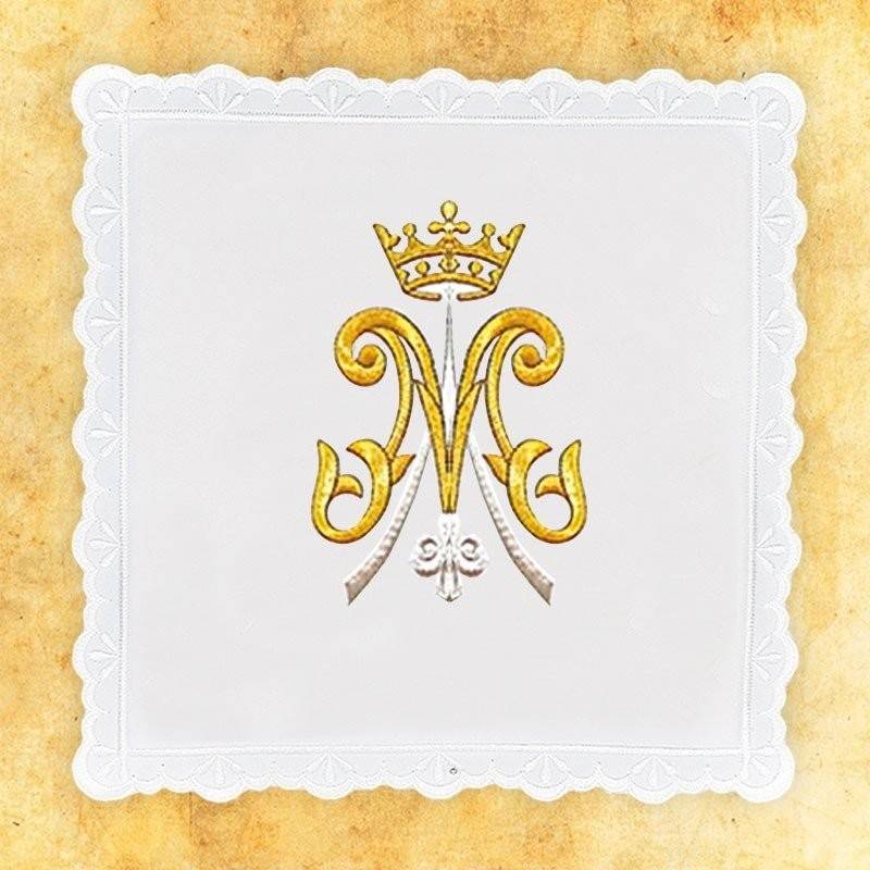 -pale brodée, corporal, pavillon de ciboire brodé, tissu: un mélange de fibres naturelles et synthétiques, traitement antitaches