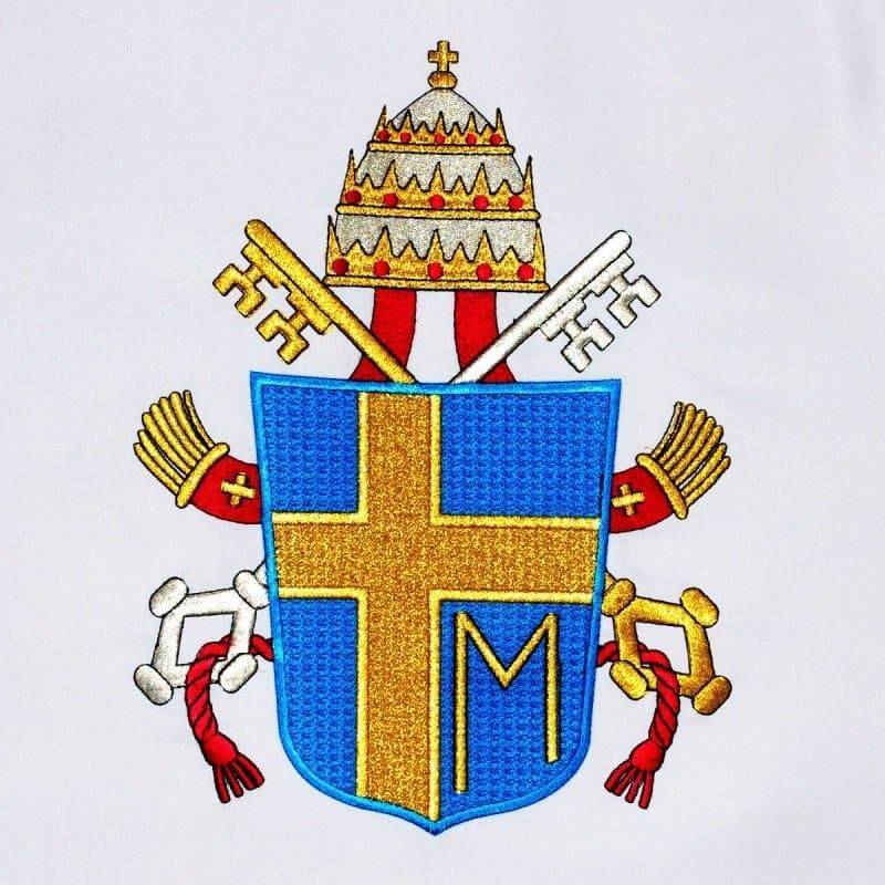 -pale brodée : 20 cm x 20 cm ( dedans un carré de plastique déhoussable pour le lavage) / corporal brodé : 45 cm x 45 cm / purificatoire brodé : 23 cm x 45 cm / manuterge à ourlet brodé : 23 cm x 45 cm