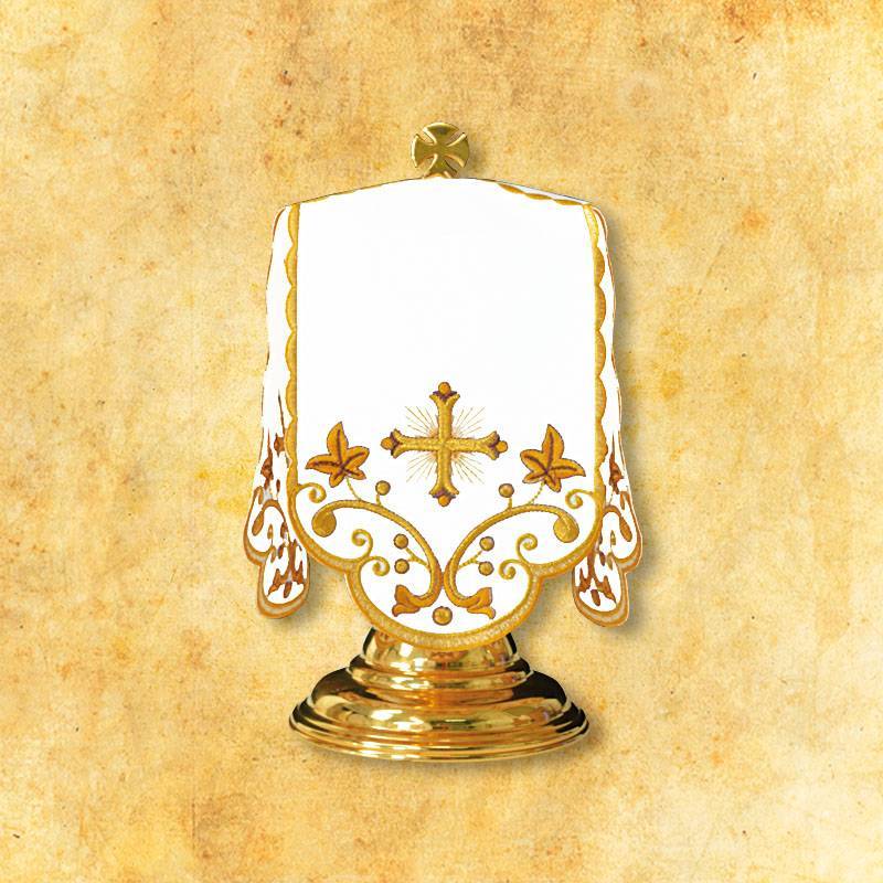 -pale brodée, corporal, pavillon de ciboire brodé, tissu: un mélange de fibres naturelles et synthétiques, traitement antitaches