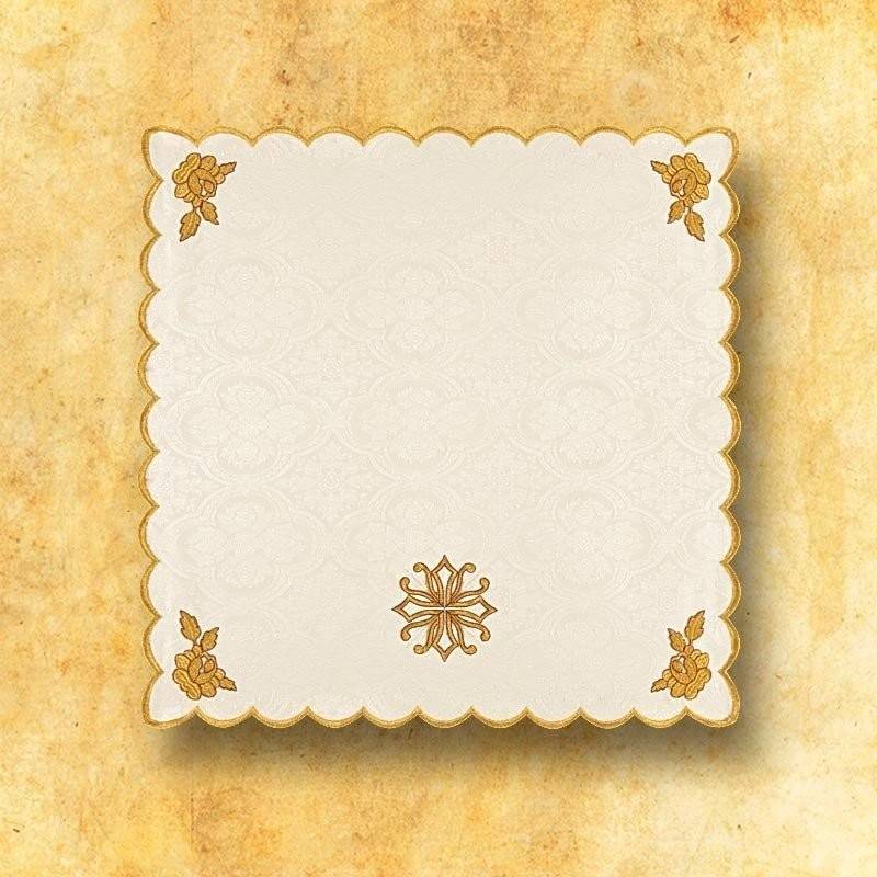 L'ensemble comprend: chasuble, bourse, manipule, étole et voile
