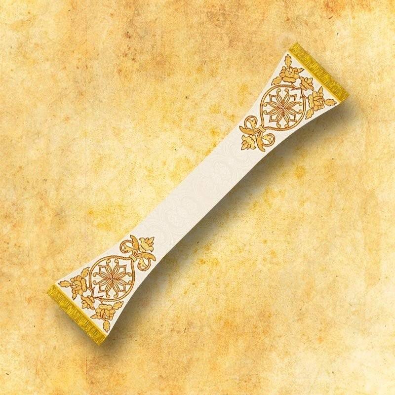 Chasuble présenté en tissu "jacquard" de la plus haute qualité sont disponibles dans des couleurs liturgiques écru. Le motif brodé décorant l'ensemble romain contient le monogramme "IHS" entouré de l'ornement en or original. Les chasubles offerte étaient délicatement raidies et une doublure en satin.