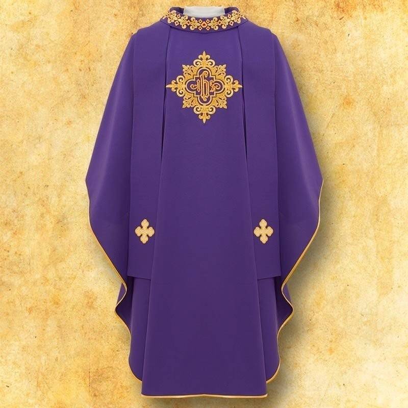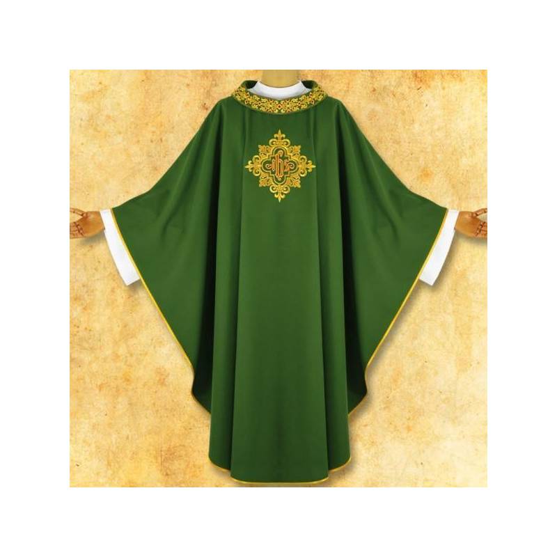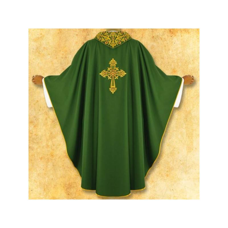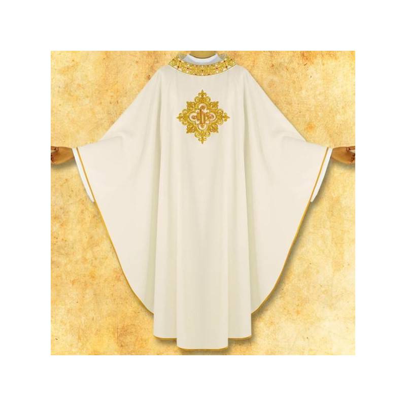 Chasuble simple et élégante, décorée de broderie l'avant et l'arrière, finition dorée. Etole intérieur approprié.
