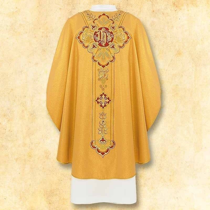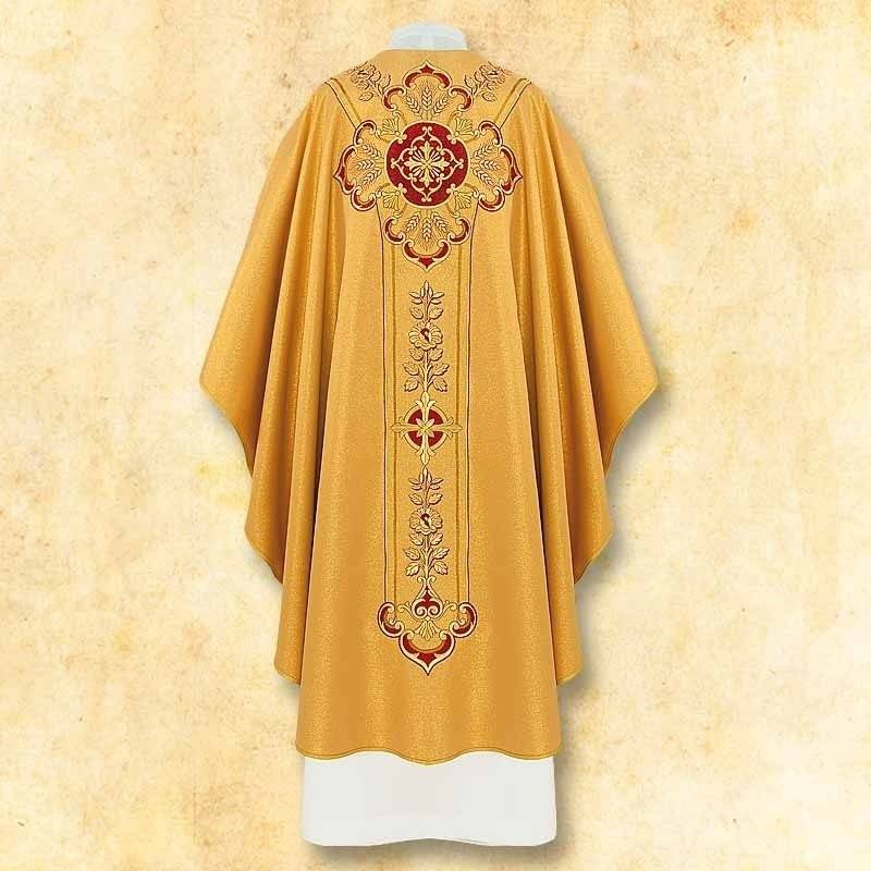 Magnifique chasuble richement brodée l'avant et l'arrière.