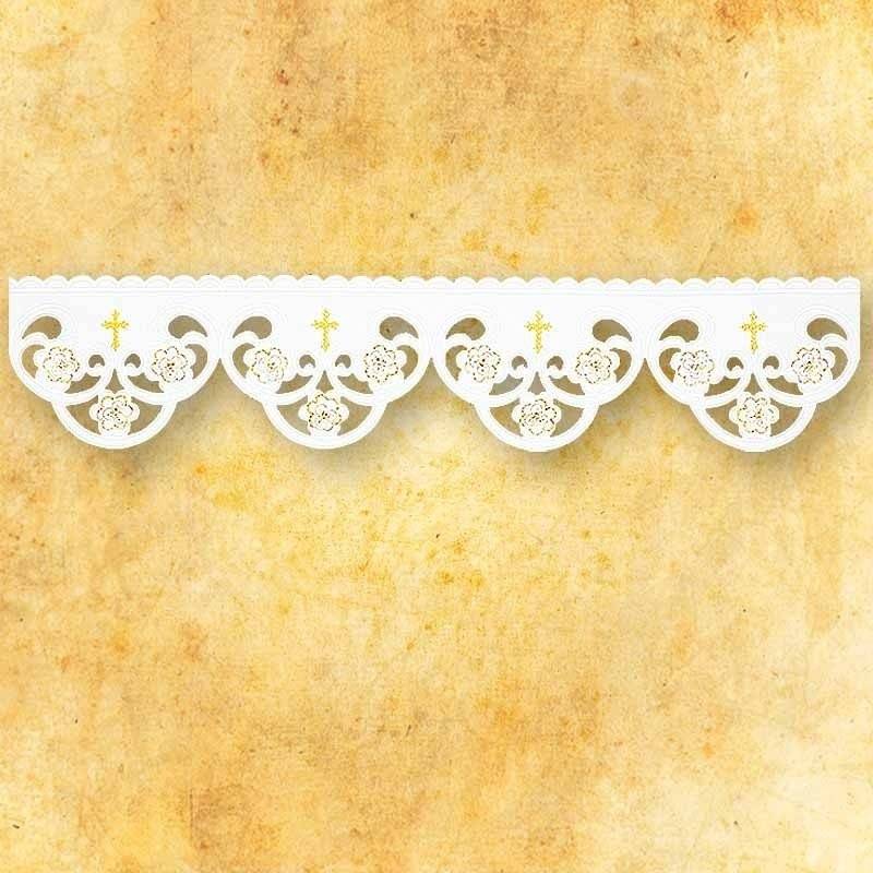Dentelle brodée, hauteur 20 ou 15 cm.