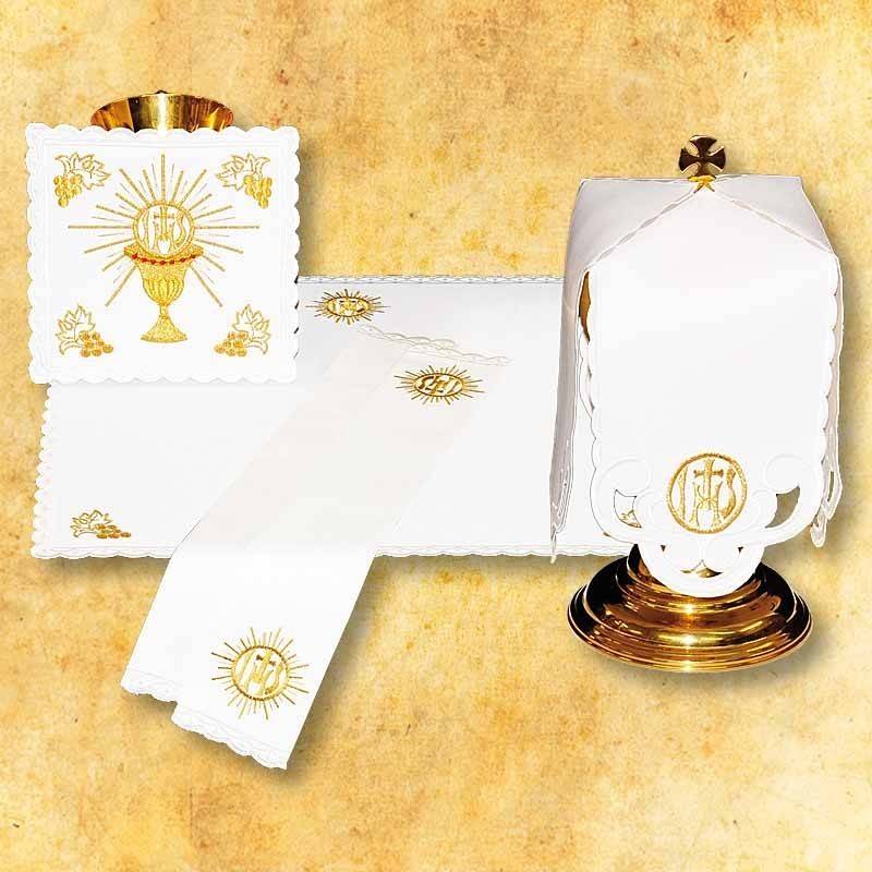 -pale brodée, corporal, pavillon de ciboire brodé, tissu: un mélange de fibres naturelles et synthétiques, traitement antitaches