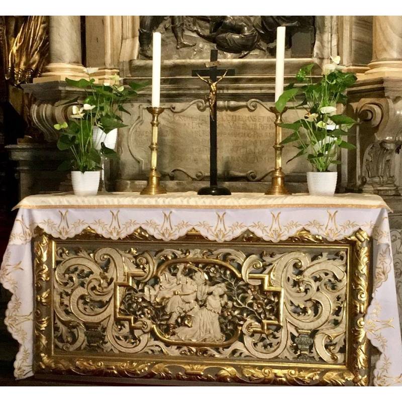 Possibilité d'acheter plusieurs produits du même motif: nappe 110x110, nappe 95x95, serviette 45x45, serviette 32x32cm, linge d’autel, pavillon de ciboire, dentelle brodée. Veuillez voir en bas l'ACCESSOIRES avec les liens.