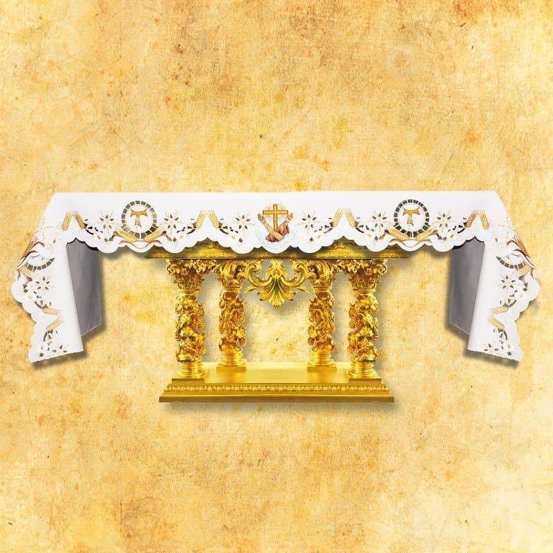 Une nappe brodée 22 cm de large avec du motif de L'ordre des Frères mineurs