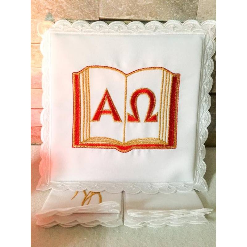 Il correspond parfaitement avec le linge d’autel du même motif.