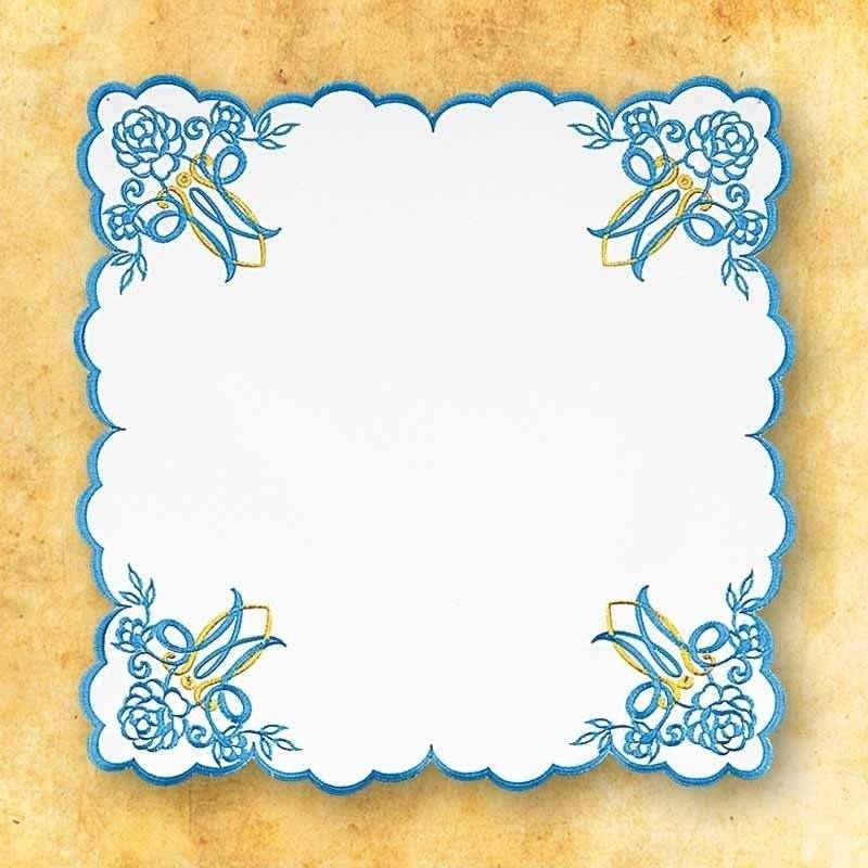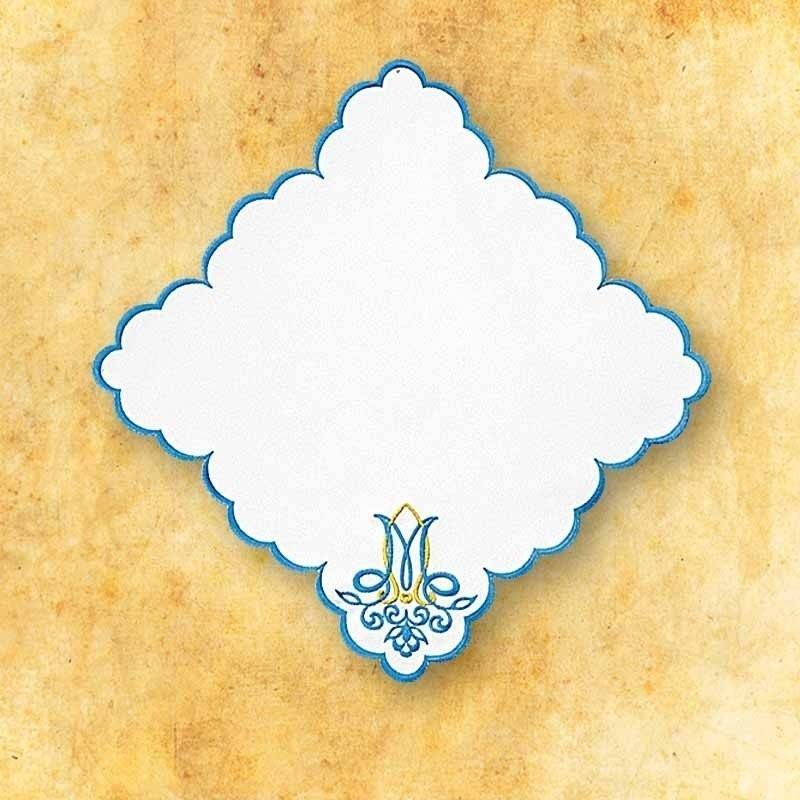 Couleur : blanc, broderiee avec fil blanc, blue et d'or.