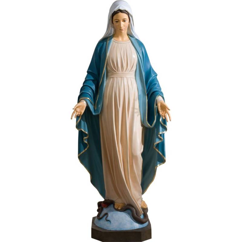 "Toi qui es apparue dans le creux du rocher de Massabielle a Bernadette, petite et simple bergère de Bigorre, Tu lui as apporté la lumière rayonnante de ton sourire" Statue de Notre Dame de Lourdes- 130 cm en résine réalisée par des artisans et peinte à la main.  Disponible en plusieurs versions coloristiques et en version interne ou externe.