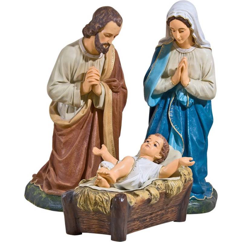 Santons de Crèche en résine réalisée par des artisans et peinte à la main. L'enfant Jésus, La Vierge Marie agenouillée, St Joseph de 67 cm.