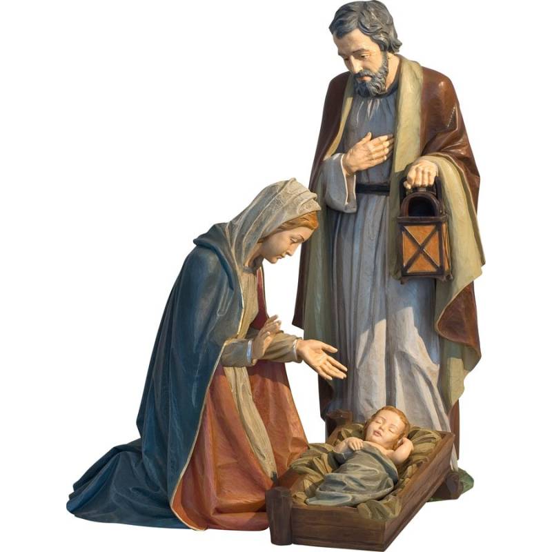 Santons de Crèche en résine réalisée par des artisans et peinte à la main. L'enfant Jésus, La Vierge Marie agenouillée, St Joseph de 88 cm.