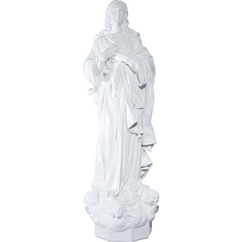 Statue de Notre Dame avec Anges 130 cm en résine réalisée par des artisans et peinte à la main. Disponible en plusieurs couleurs, en version interne ou externe.