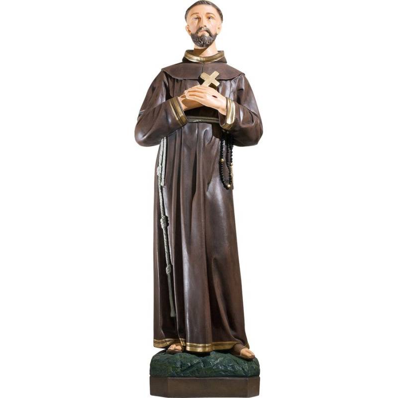 Statue de Saint François- 100 cm de hauteur en résine réalisée par des artisans et peinte à la main.